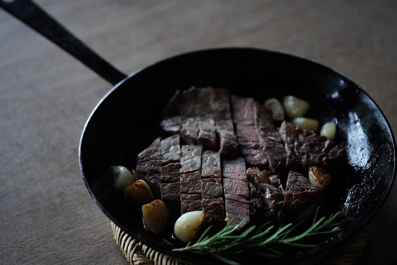お会いした事がある方はご存知かもしれませんが、私たちは食事の時間がとても好きで、その為なら手間も時間もかけてご飯を作ります。いつからか、鉄やアルミのフライパンをメインに使うようになりました。テフロン製のものを買い替える事に違和感を感じ始めた事もありますが、それ以上に鉄製のフライパンで焼いた野菜や肉が美味しい事が大きな理由でした。