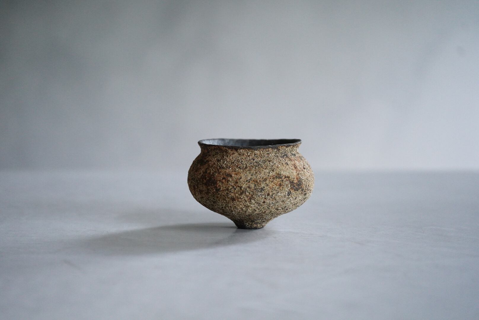二千年以上も前の種子が開花したという大賀蓮に感銘を受け、「土の種子」をテーマに焼成と削り出しを繰り返すことで生み出される青木宏の作品は、自らの意志で出てきた後、目を瞑り何かを待ち続けているような深閑とした存在感を放っています。
