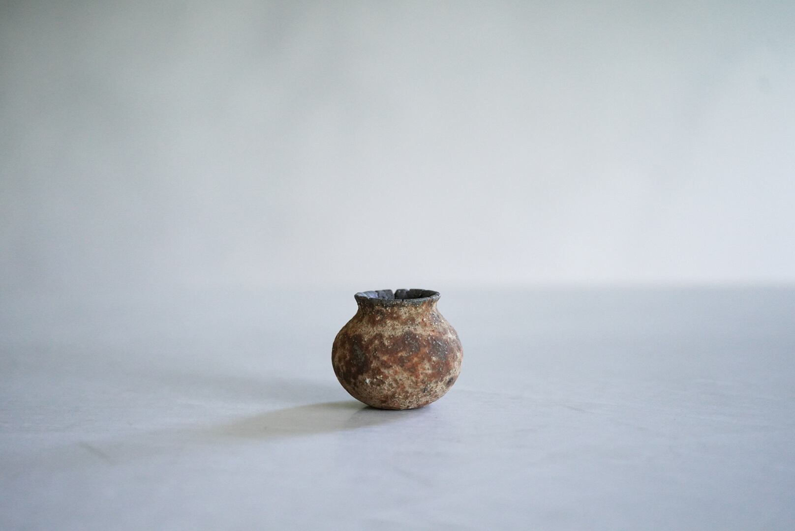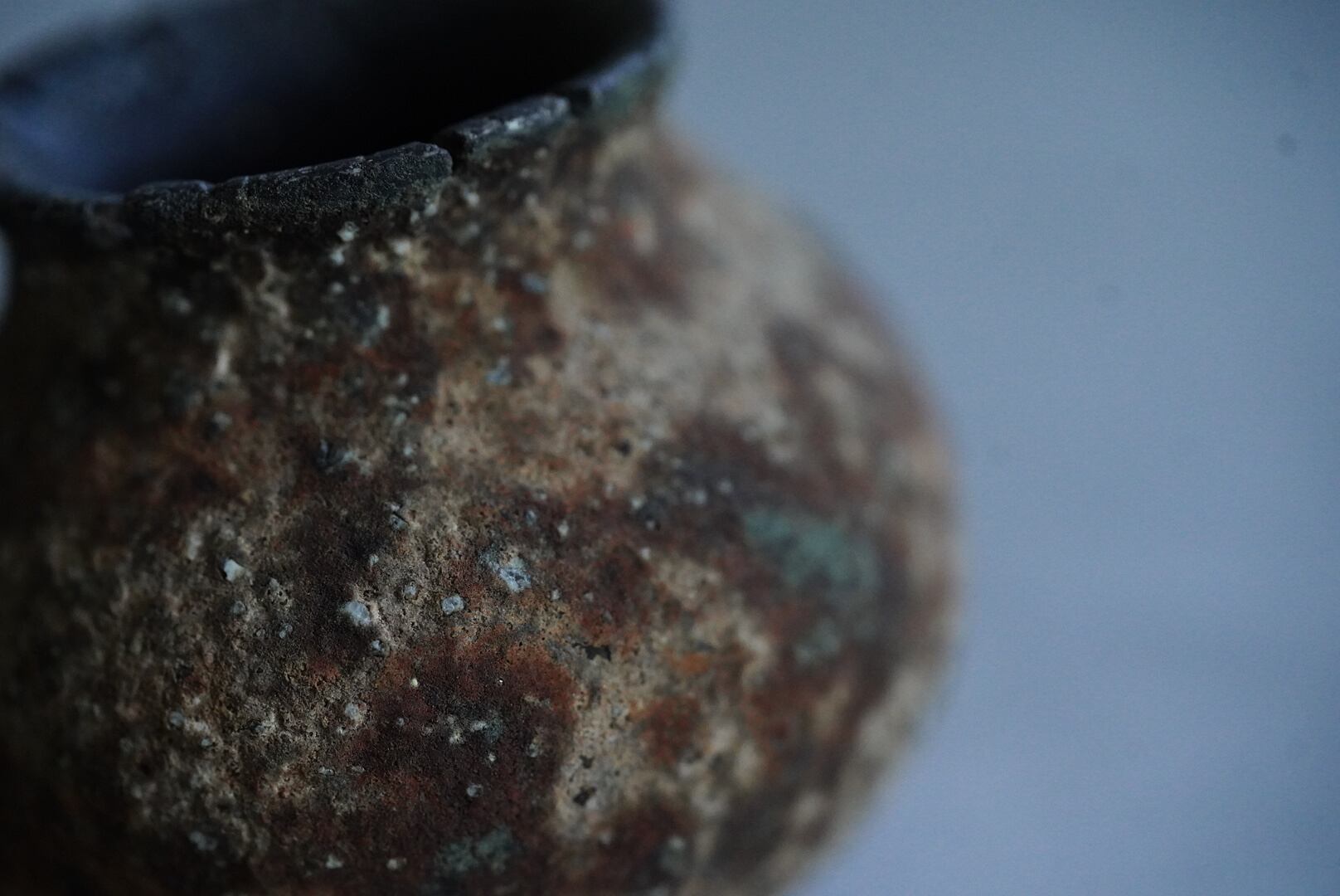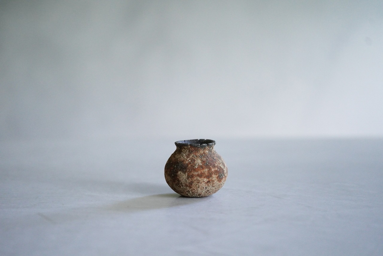 二千年以上も前の種子が開花したという大賀蓮に感銘を受け、「土の種子」をテーマに焼成と削り出しを繰り返すことで生み出される青木宏の作品は、自らの意志で出てきた後、目を瞑り何かを待ち続けているような深閑とした存在感を放っています。