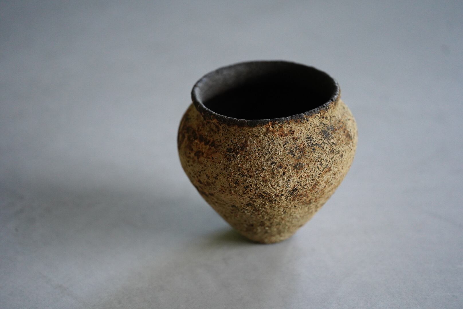 二千年以上も前の種子が開花したという大賀蓮に感銘を受け、「土の種子」をテーマに焼成と削り出しを繰り返すことで生み出される青木宏の作品は、自らの意志で出てきた後、目を瞑り何かを待ち続けているような深閑とした存在感を放っています。