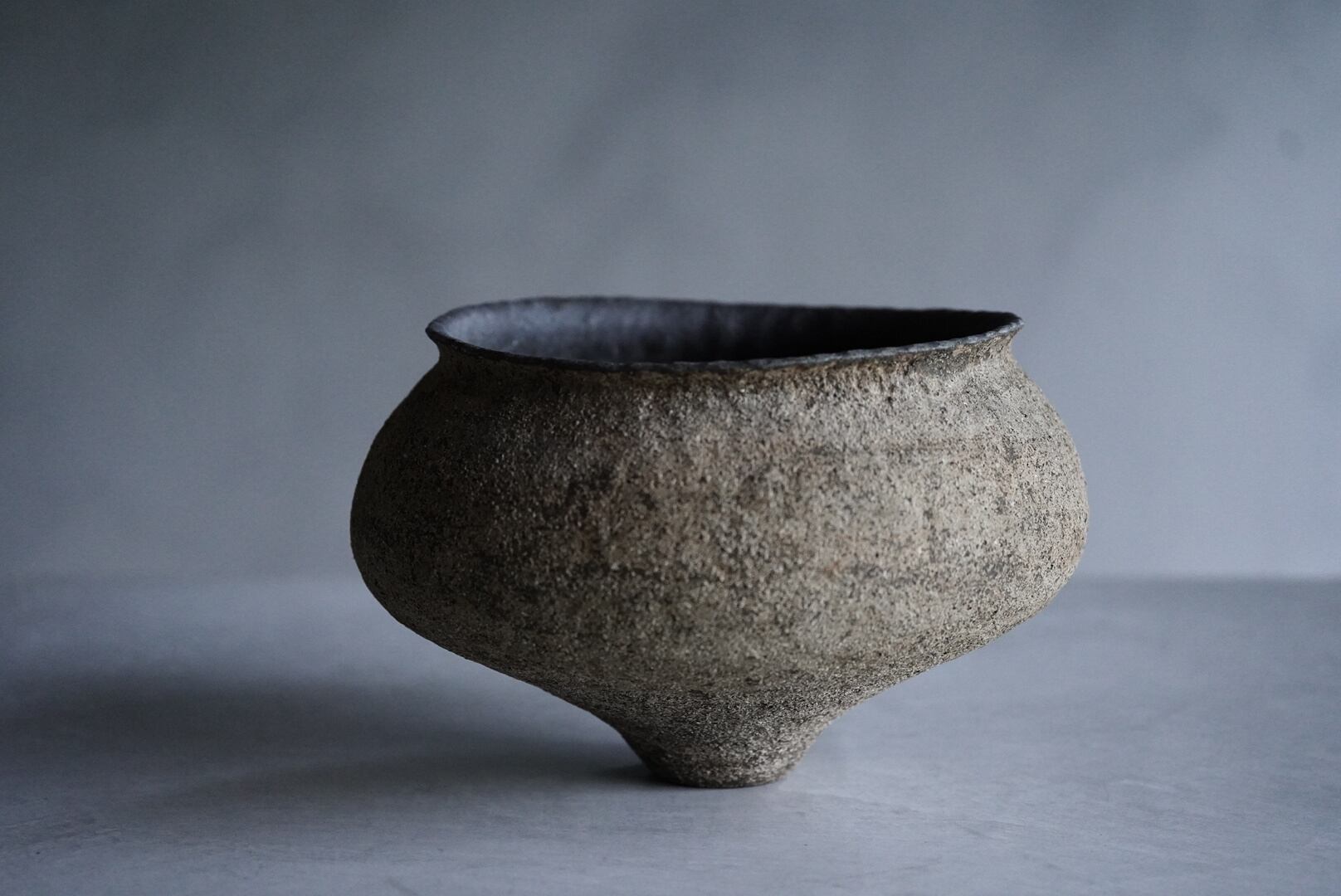 二千年以上も前の種子が開花したという大賀蓮に感銘を受け、「土の種子」をテーマに焼成と削り出しを繰り返すことで生み出される青木宏の作品は、自らの意志で出てきた後、目を瞑り何かを待ち続けているような深閑とした存在感を放っています。
