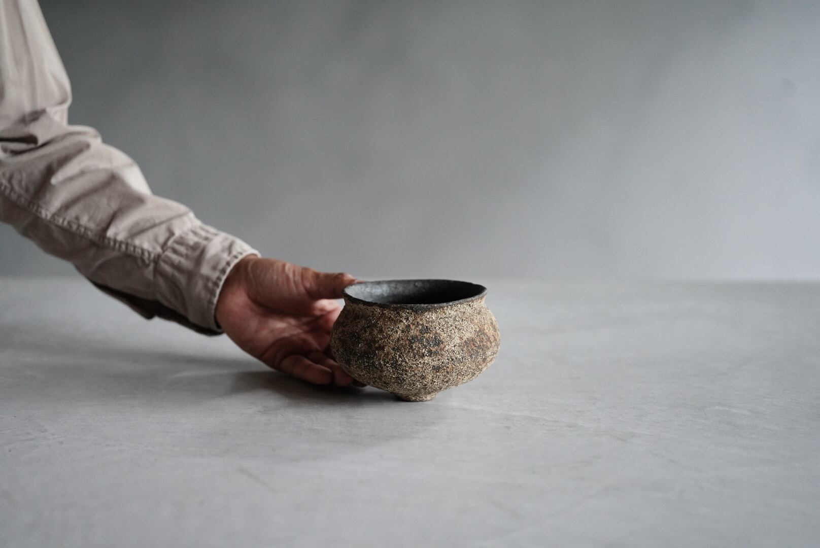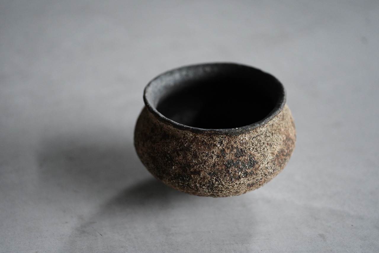 二千年以上も前の種子が開花したという大賀蓮に感銘を受け、「土の種子」をテーマに焼成と削り出しを繰り返すことで生み出される青木宏の作品は、自らの意志で出てきた後、目を瞑り何かを待ち続けているような深閑とした存在感を放っています。