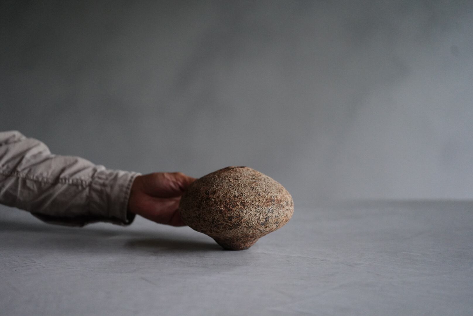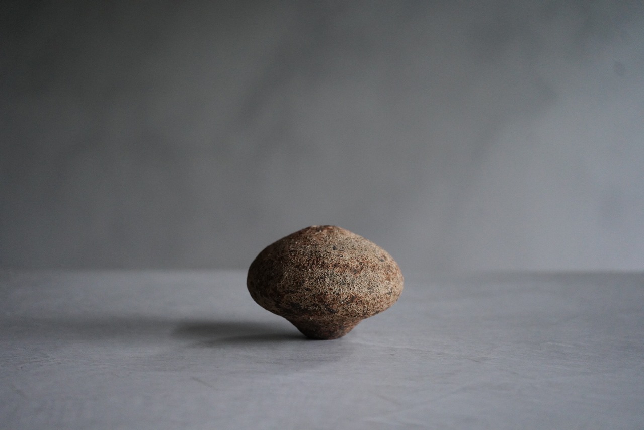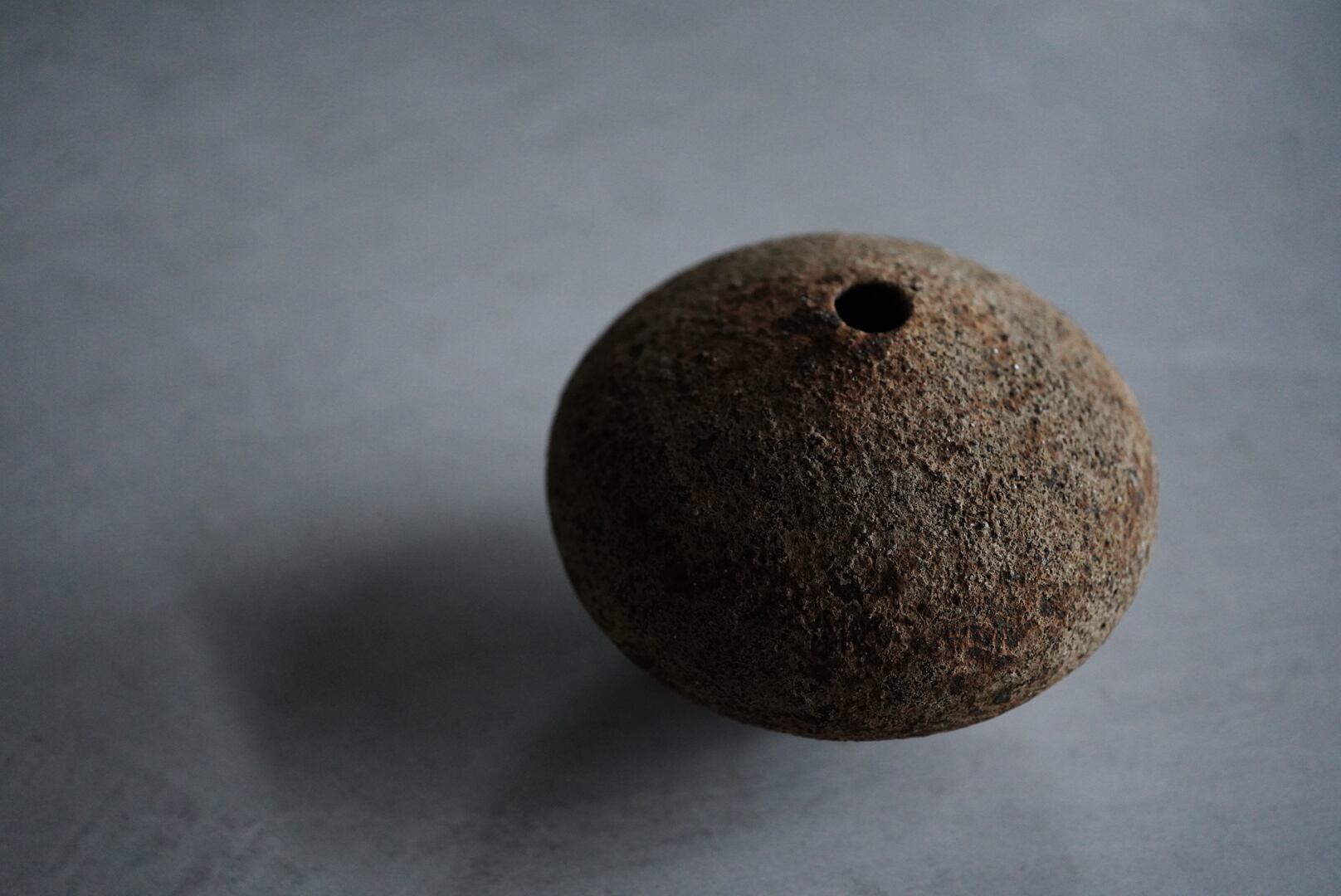二千年以上も前の種子が開花したという大賀蓮に感銘を受け、「土の種子」をテーマに焼成と削り出しを繰り返すことで生み出される青木宏の作品は、自らの意志で出てきた後、目を瞑り何かを待ち続けているような深閑とした存在感を放っています。