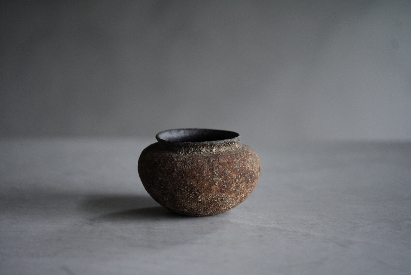 二千年以上も前の種子が開花したという大賀蓮に感銘を受け、「土の種子」をテーマに焼成と削り出しを繰り返すことで生み出される青木宏の作品は、自らの意志で出てきた後、目を瞑り何かを待ち続けているような深閑とした存在感を放っています。