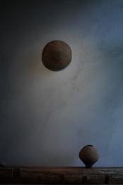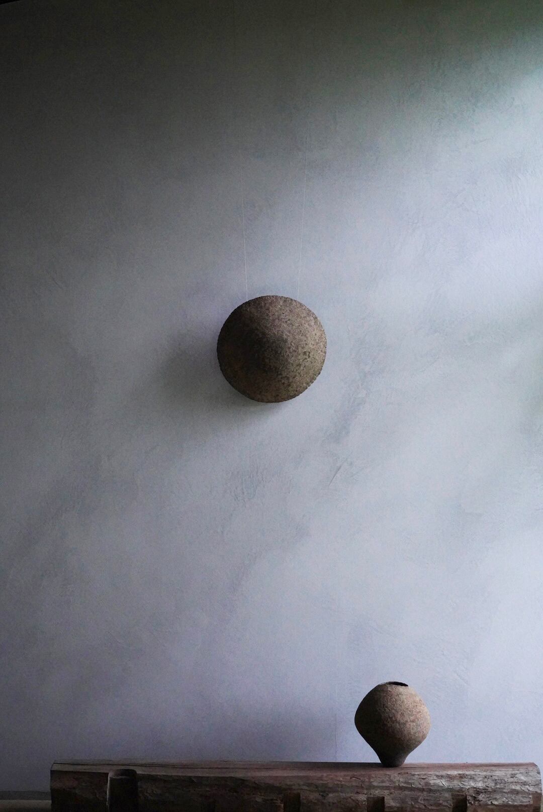 青木宏の作品の中では珍しい、壁掛け型の土の種子。