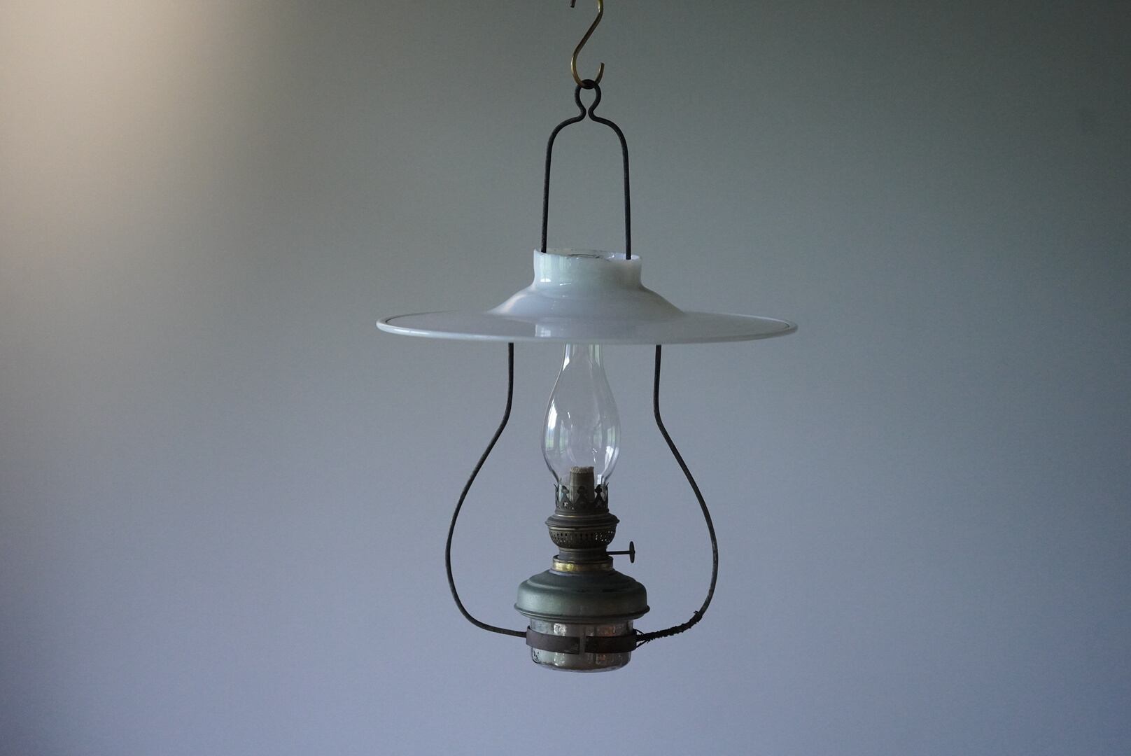 吊り型の古い大きめのオイルランプで、分解して清掃済みのものです。