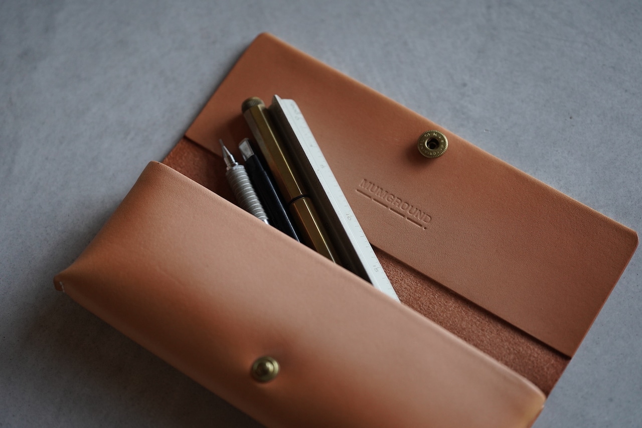 革のペンケースは使うほどに艶が出て、柔らかくなり良い風合いが出てきます。