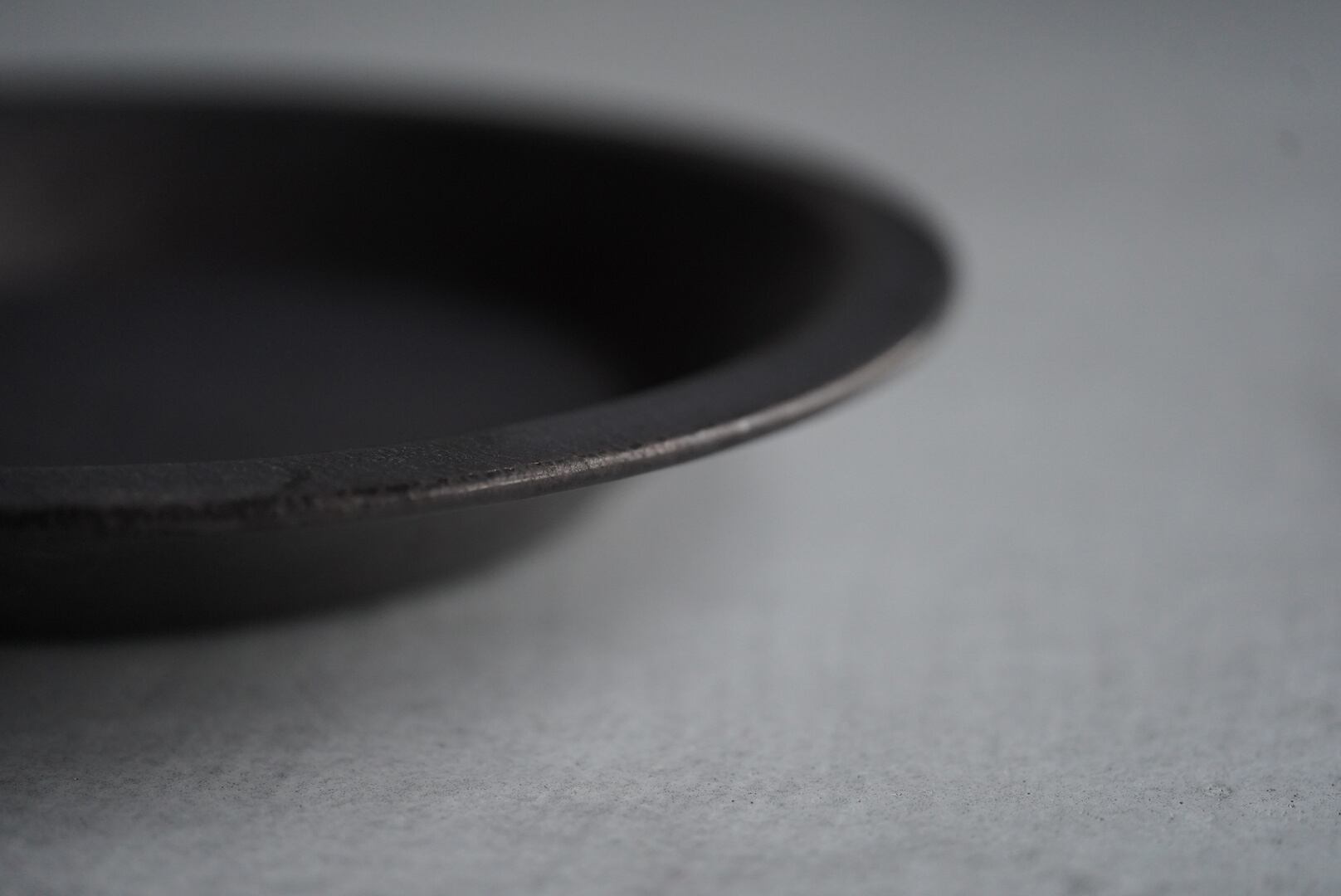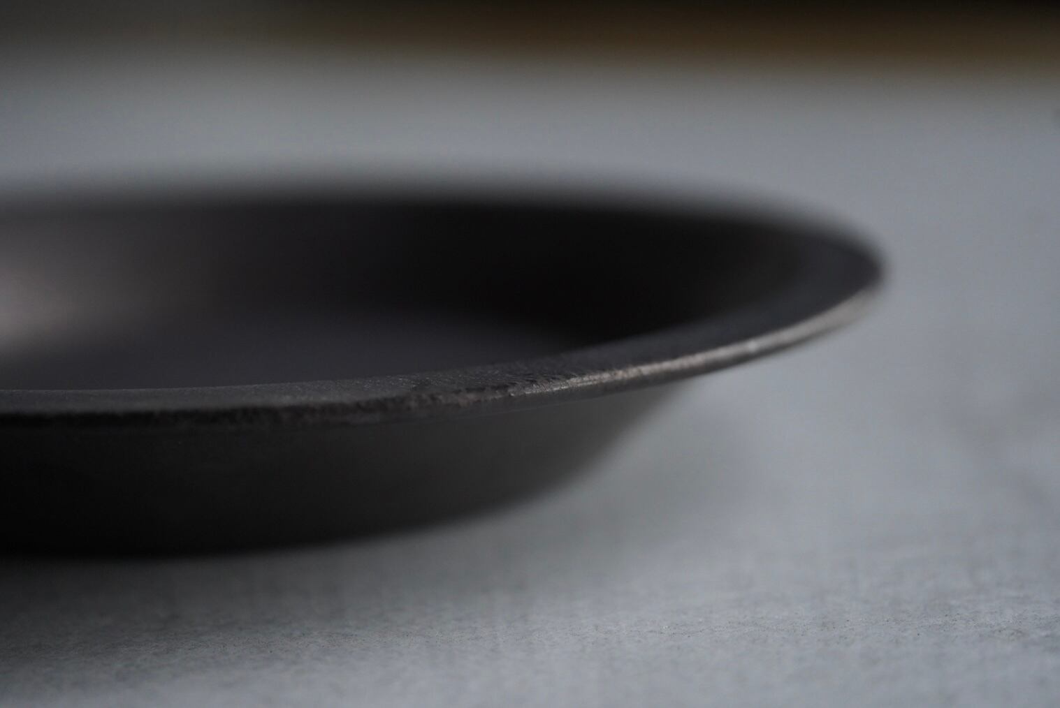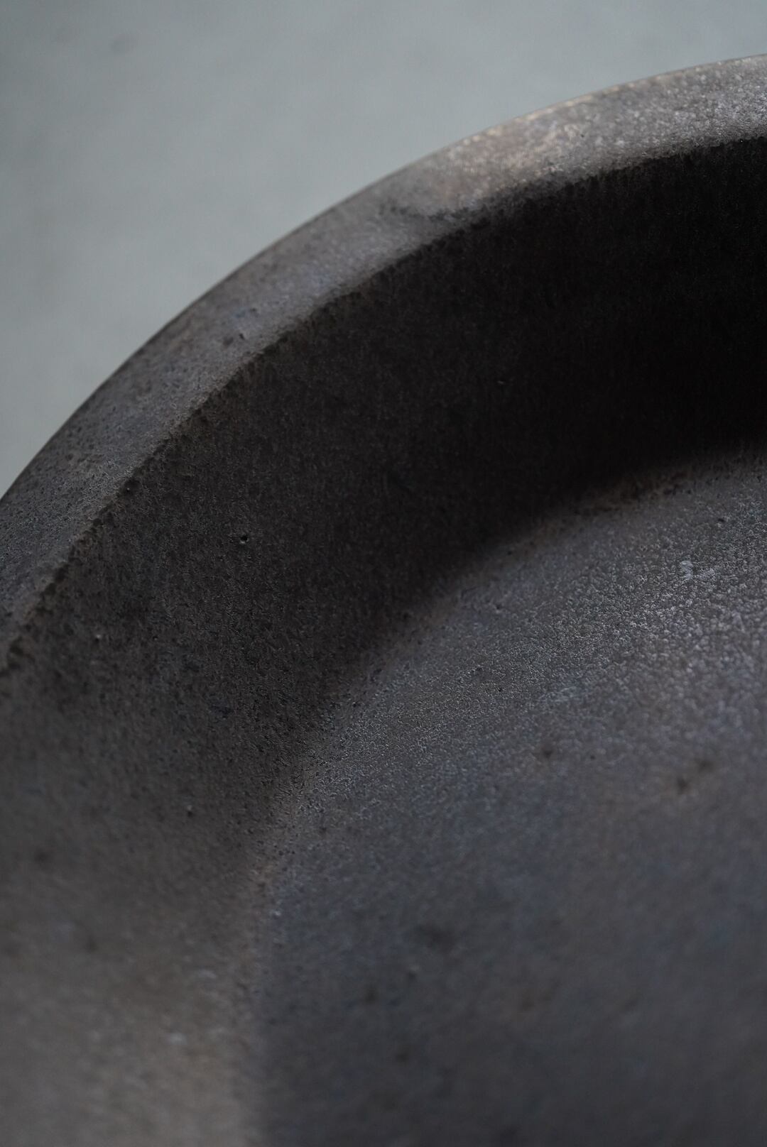 料理が盛られた時に器が完成する。器はあくまで背景。そうお話しされた通り、簡素で美しい輪郭に、何か絹の様なしっとりとした質感の釉薬で仕上げられています。手にしてみると、そのキメ細やかな質感に品質の高さが伺えます。