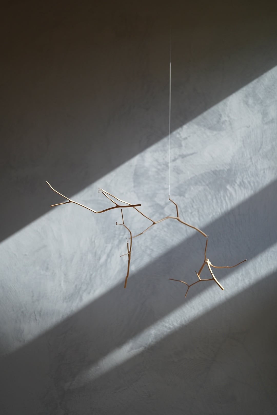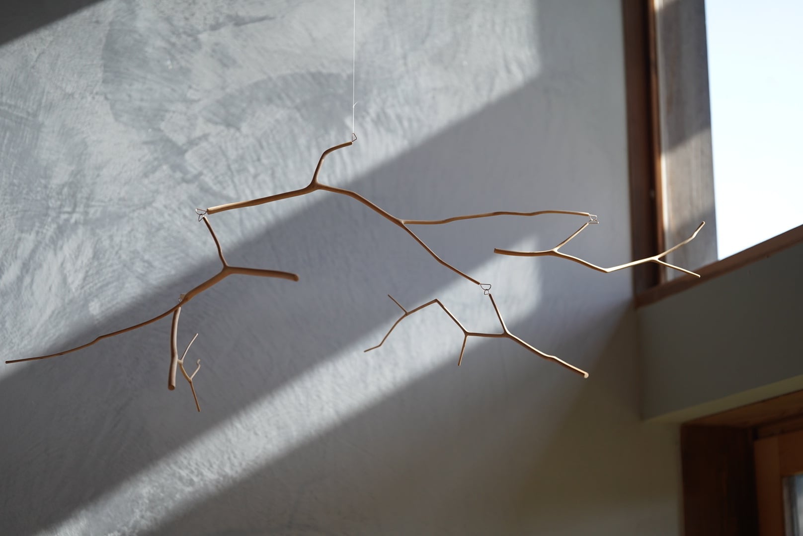 Prior to achieving balance as a mobile, Kaiyama prioritizes the branch’s essential beauty. The compositions consider how the branch might have naturally grown and how it moves through air currents—an element of kinetic art. These are, in essence, "floating sculptures" where the sculptural element remains the strongest focus.