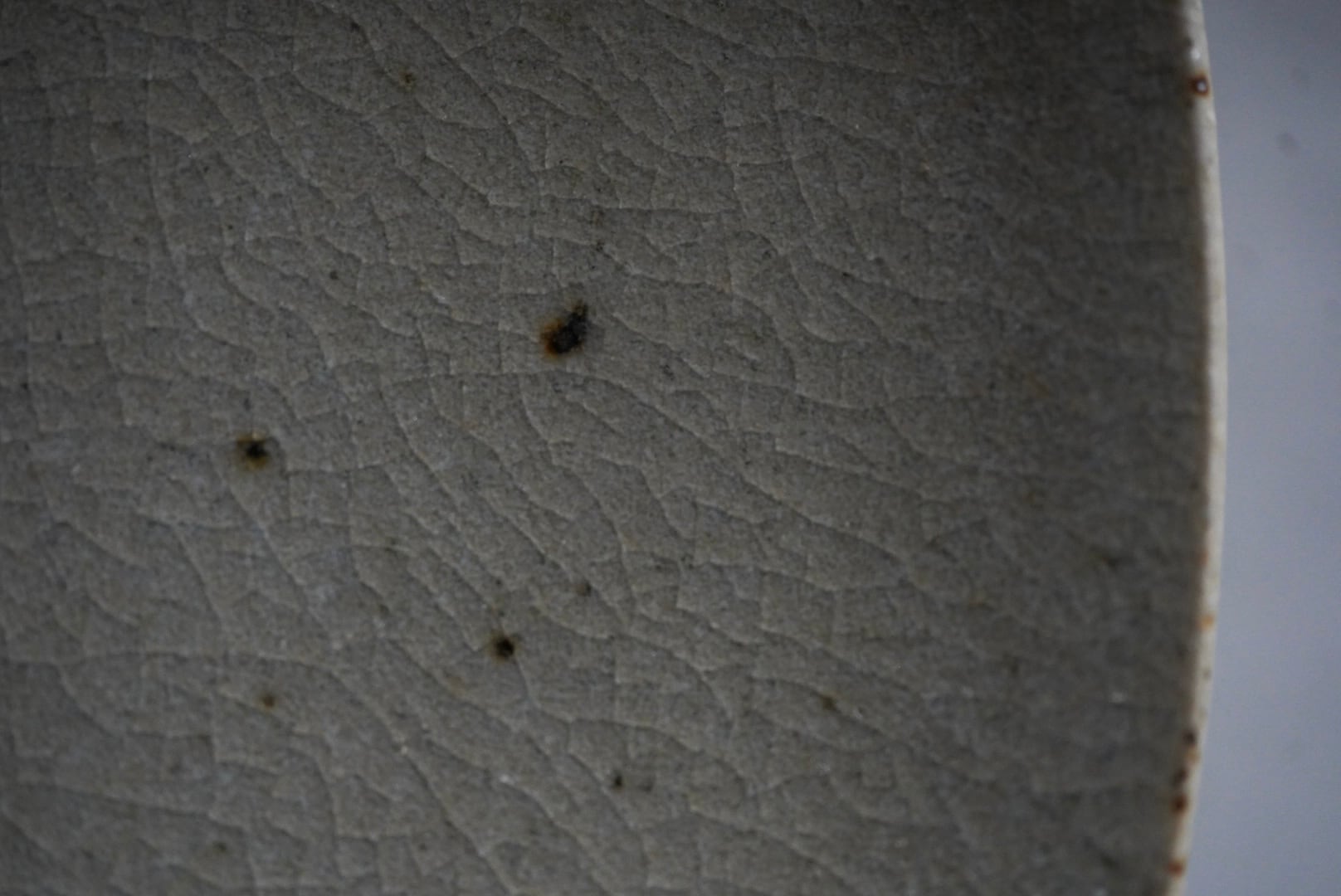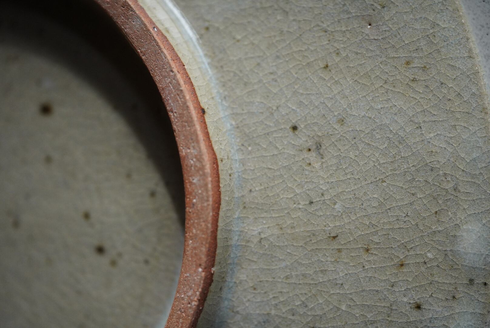 はっきりとした輪郭で適度な重みと厚みもあり、日々の食卓でも扱いやすい作品です。所々に見られる焦茶の点が器の自然な景色になっています。