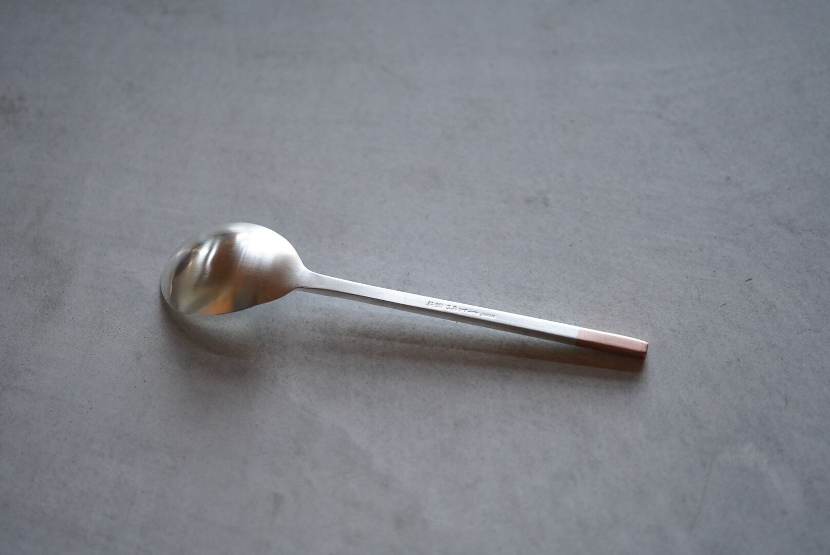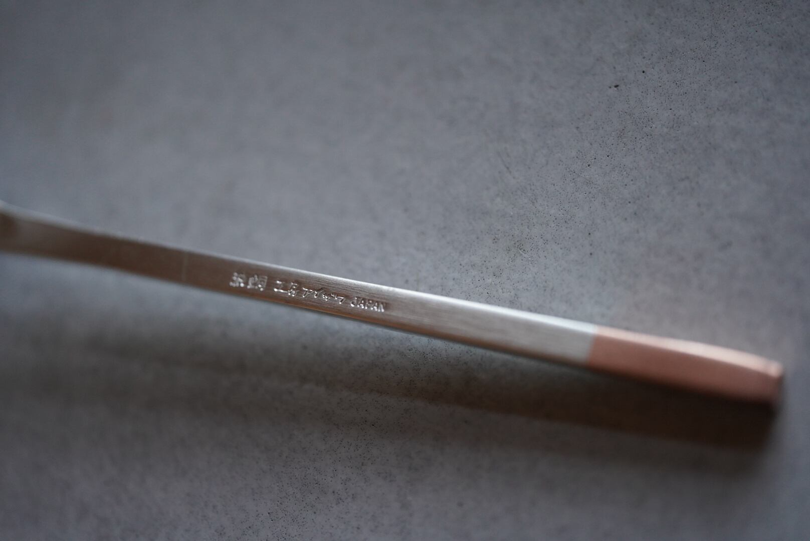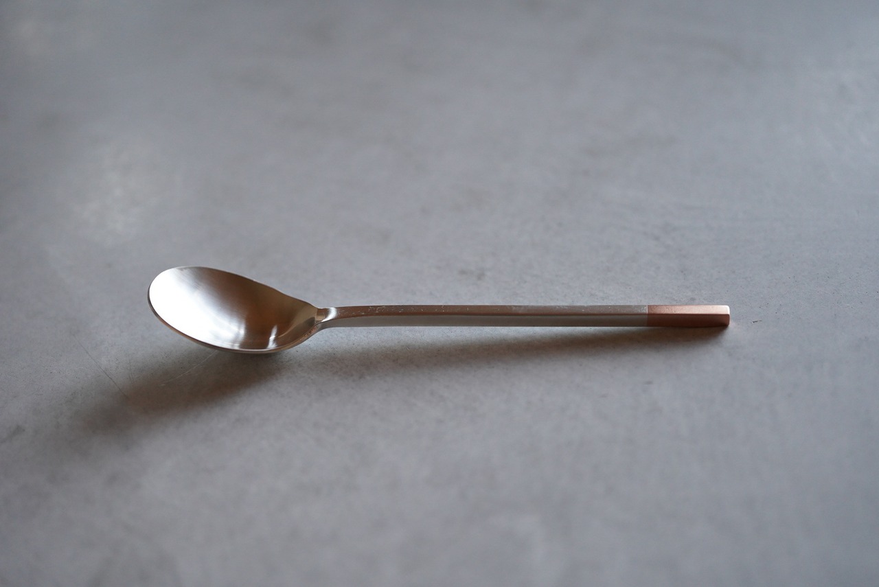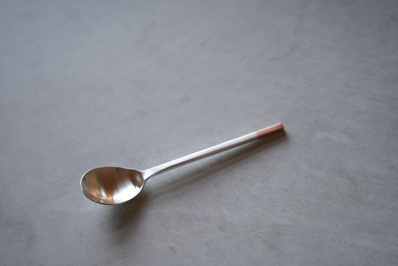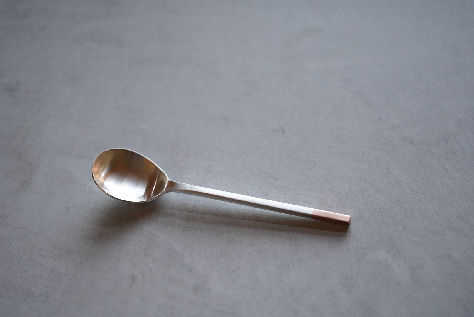 純銅をベースに白銀で仕上げられた、工房アイザワのデザートスプーン。