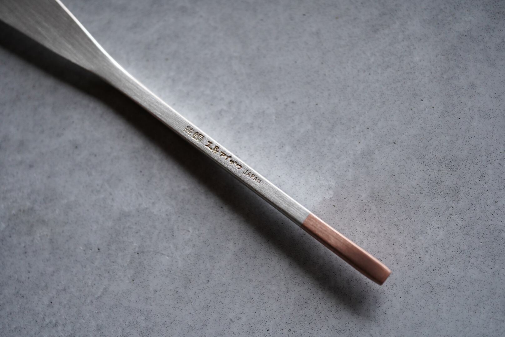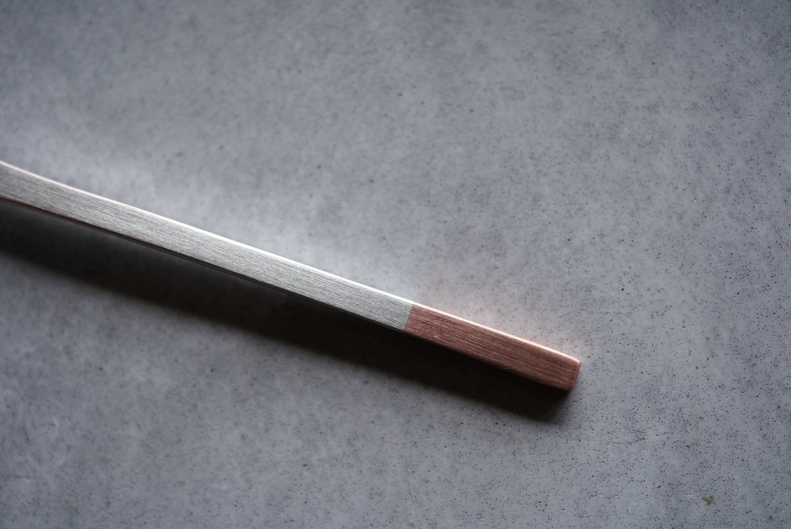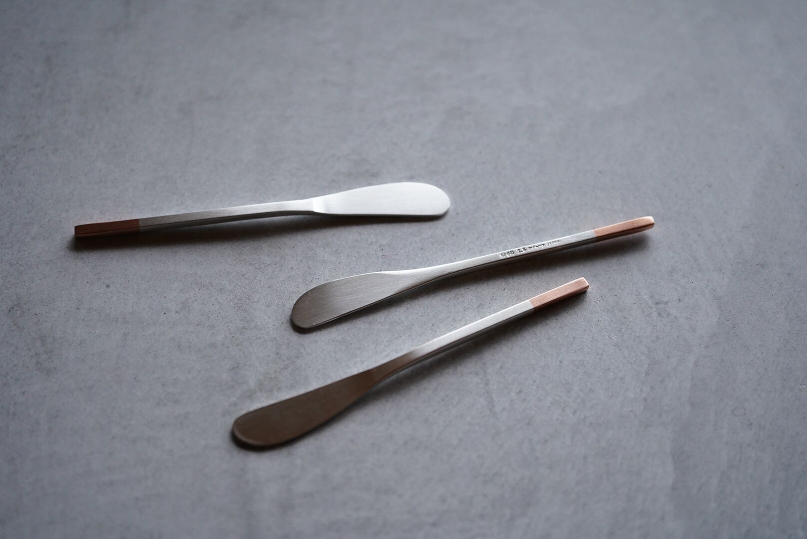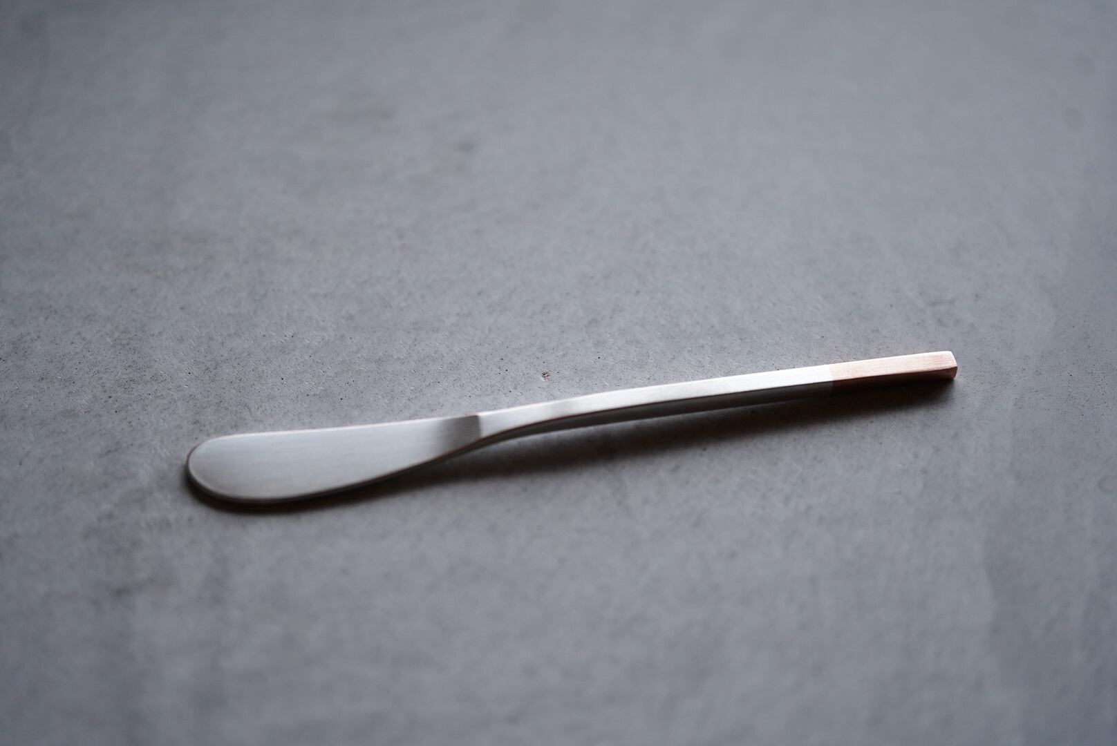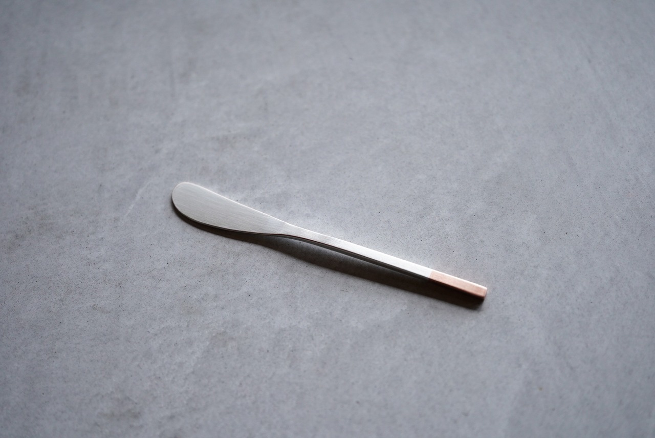 純銅をベースに白銀で仕上げられた、工房アイザワのバターナイフ。