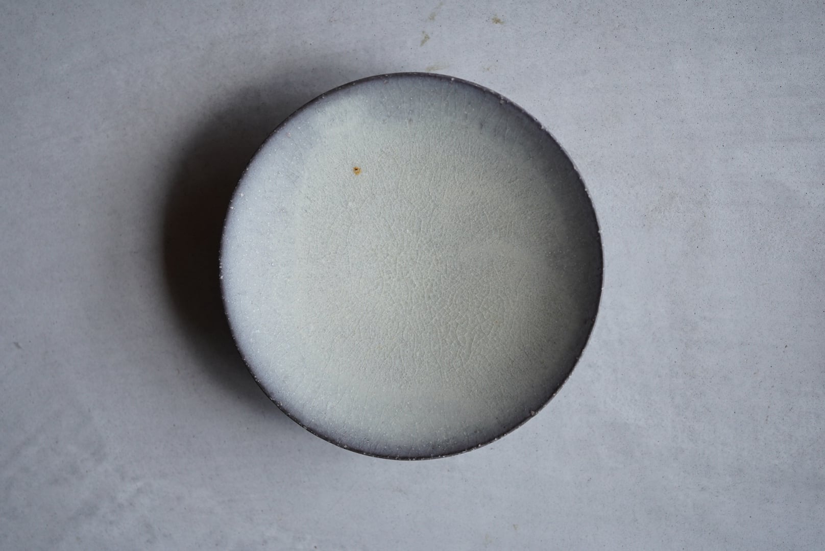 霧の中に輪郭が現れたかのような、柔らかい釉溜まりが優しい印象の平皿です。